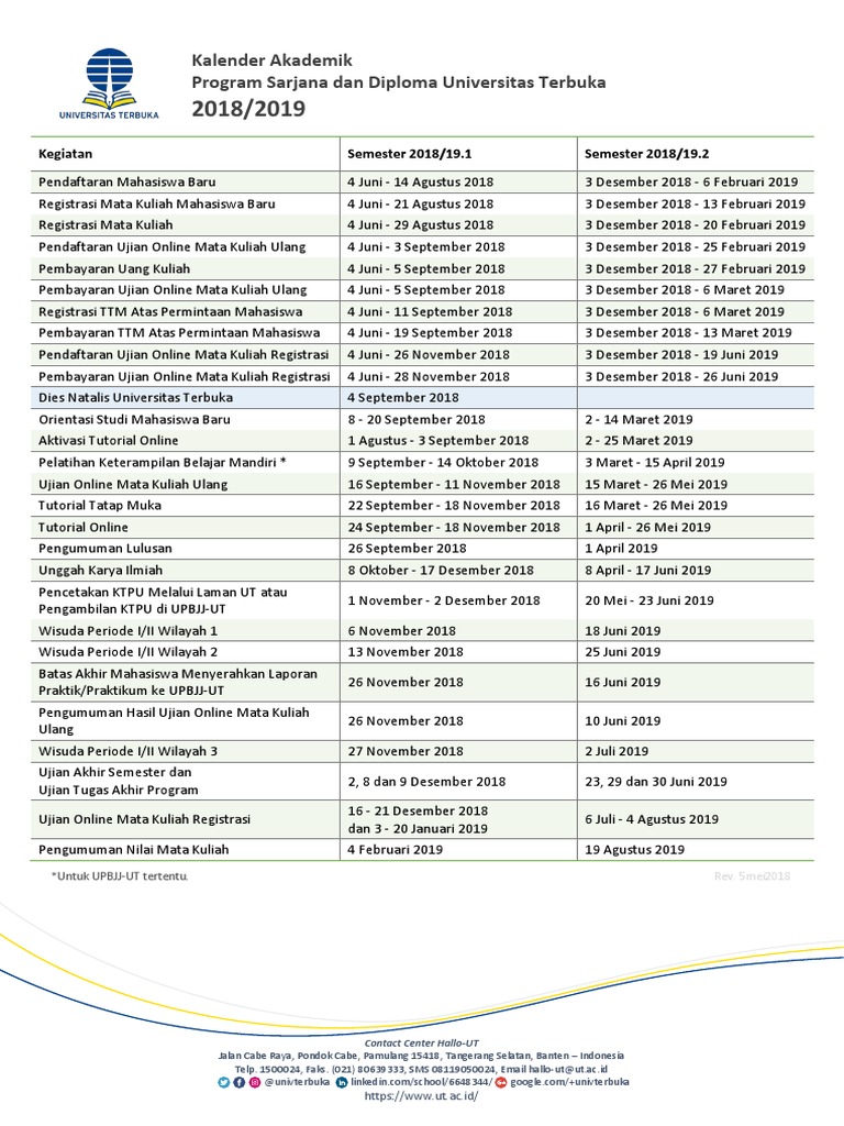 Kalender Akademik Semester 2018 2019 Sarjana Diploma Ut Pdf